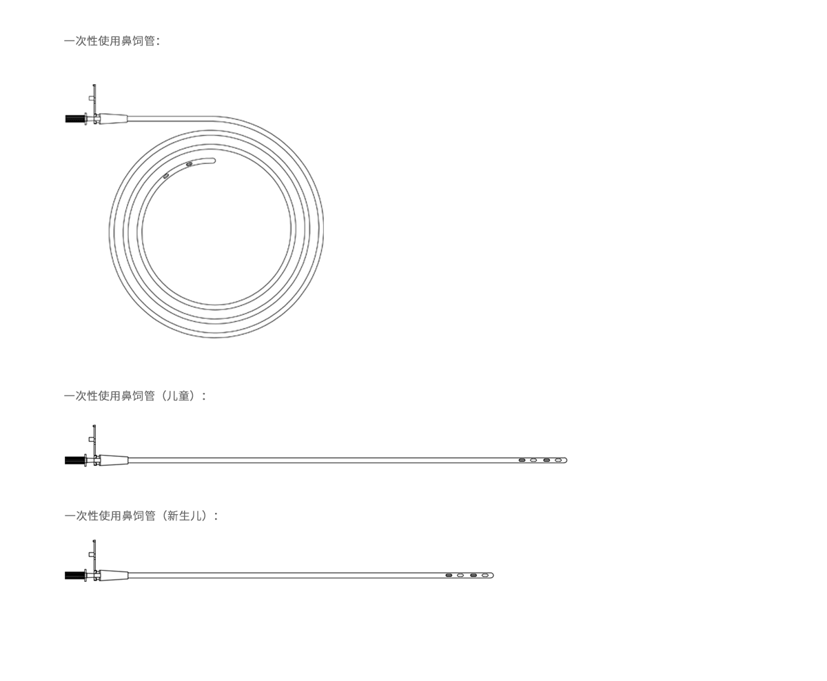 The product tubes are of different specifications. They are soft and smooth and contain guide wires for easy placement into the stomach. It is equipped with a column connector, which can be attached to a syringe or a Y connector.